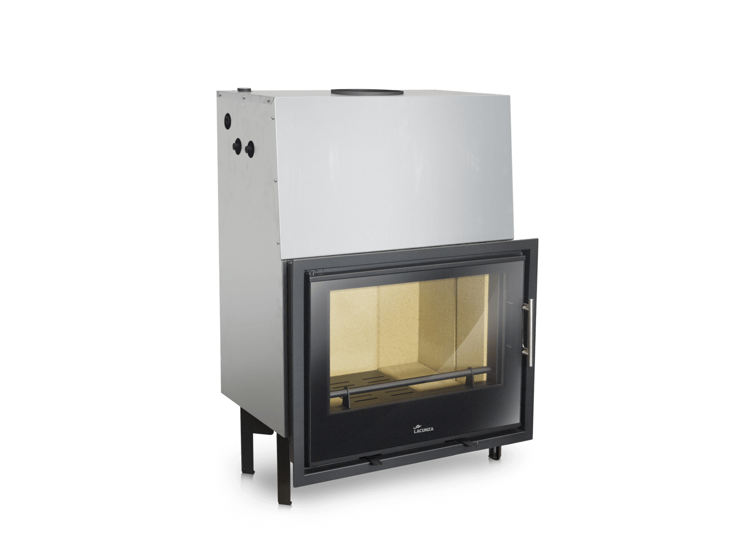 Fabricada con estructura exterior de acero y hogar de material refractario, esta chimenea garantiza durabilidad, seguridad y una óptima acumulación del calor. Incorpora cenicero, parrilla de leña, deflector, cristal anti-manchas y sistema de deshollinado fácil, facilitando el uso y el mantenimiento diario.