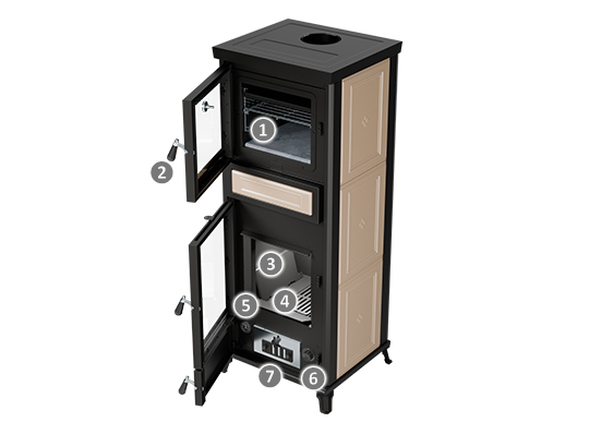 Termoestufa ecológica de leña de alta eficiencia, versátil y de uso económico, ya que calienta el agua para la instalación de la casa. Conectada a un calentador, produce agua caliente sanitaria disponible también por la mañana, con el hogar apagado. Amplio vidrio panorámico y gran cámara de combustión, para no renunciar al encanto del fuego; intercambiador con tecnología THERMOCORE. Conexión rápida y sencilla gracias a la versión “READY TO START” lista para la instalación, equipada con: circulador, válvula de seguridad, válvula de descarga térmica, válvula de purga, intercambiador de seguridad y vaso de expansión para la instalación con vaso cerrado.