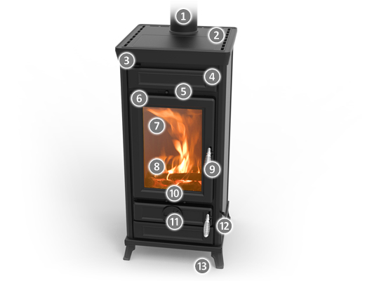 Vittoria representa la solución ideal para aquellos que buscan utilidad, solidez, estética en un espacio reducido. Su cámara de combustión desarrollada verticalmente permite admirar el encanto del fuego de leña. El innovador dispositivo SMOKE BY PASS reduce drásticamente la salida de humo en la habitación con cada carga de leña.